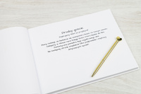 - - Wyjmowana kartka, która podpowiada gościom co mogą wpisać w księdze.